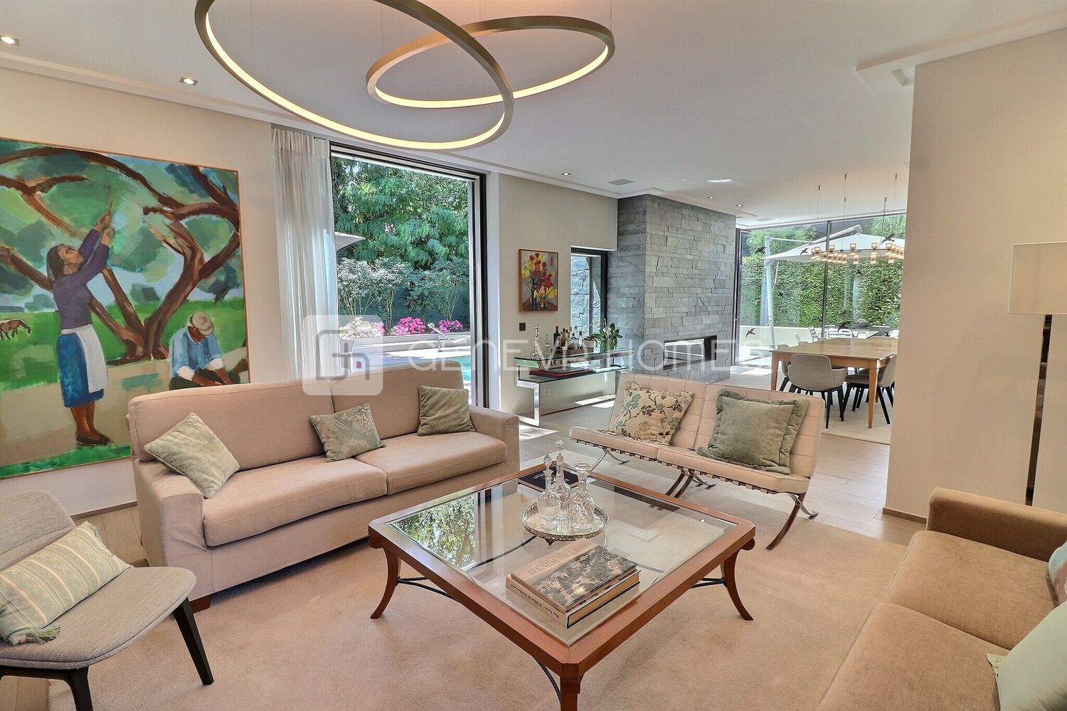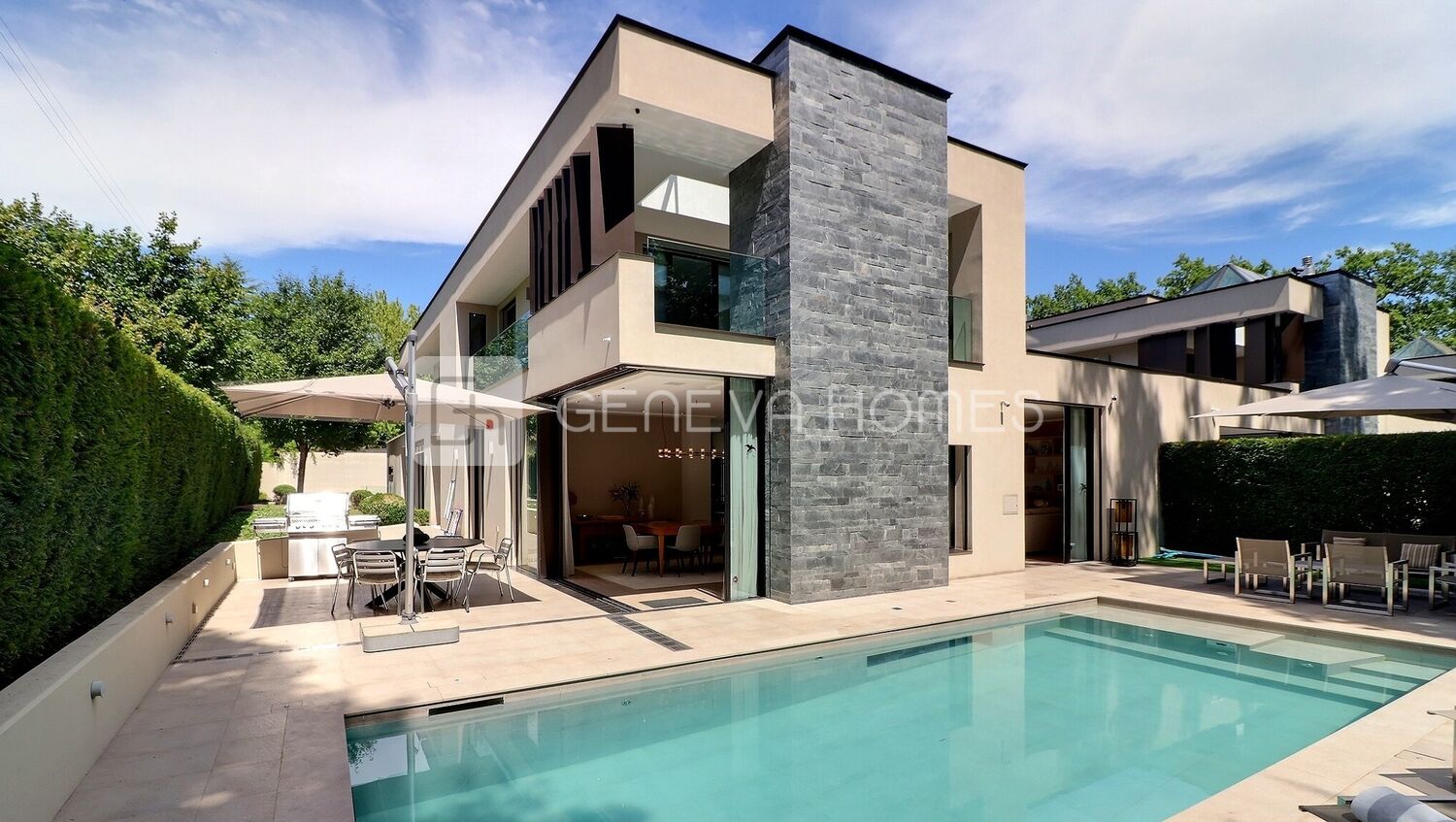 Nestled in the highly sought-after neighborhood of Conches, this exceptional villa is set in a peaceful residential environment on the edge of a forest. It offers ample living space, complemented by a generous 300 m² terrace with a heated swimming pool.