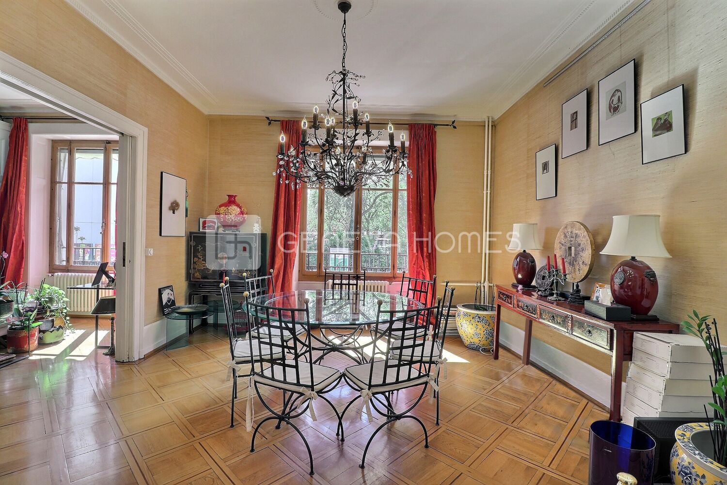 Note: High ceilings and period parquet flooring