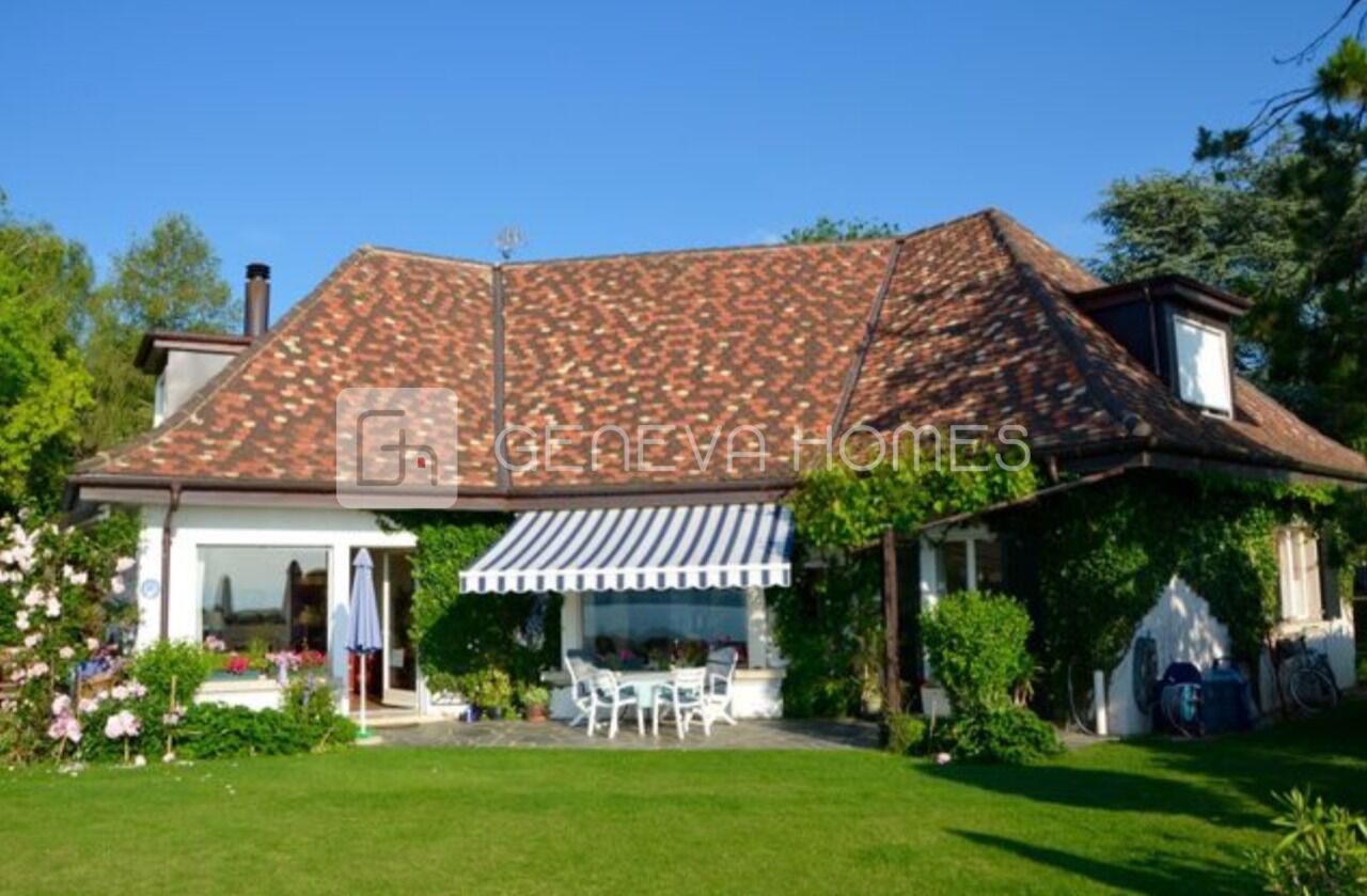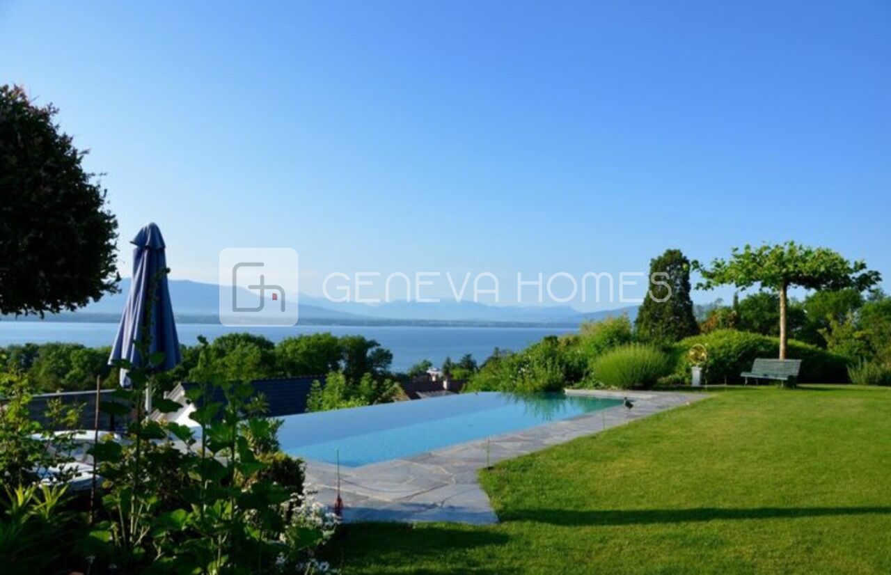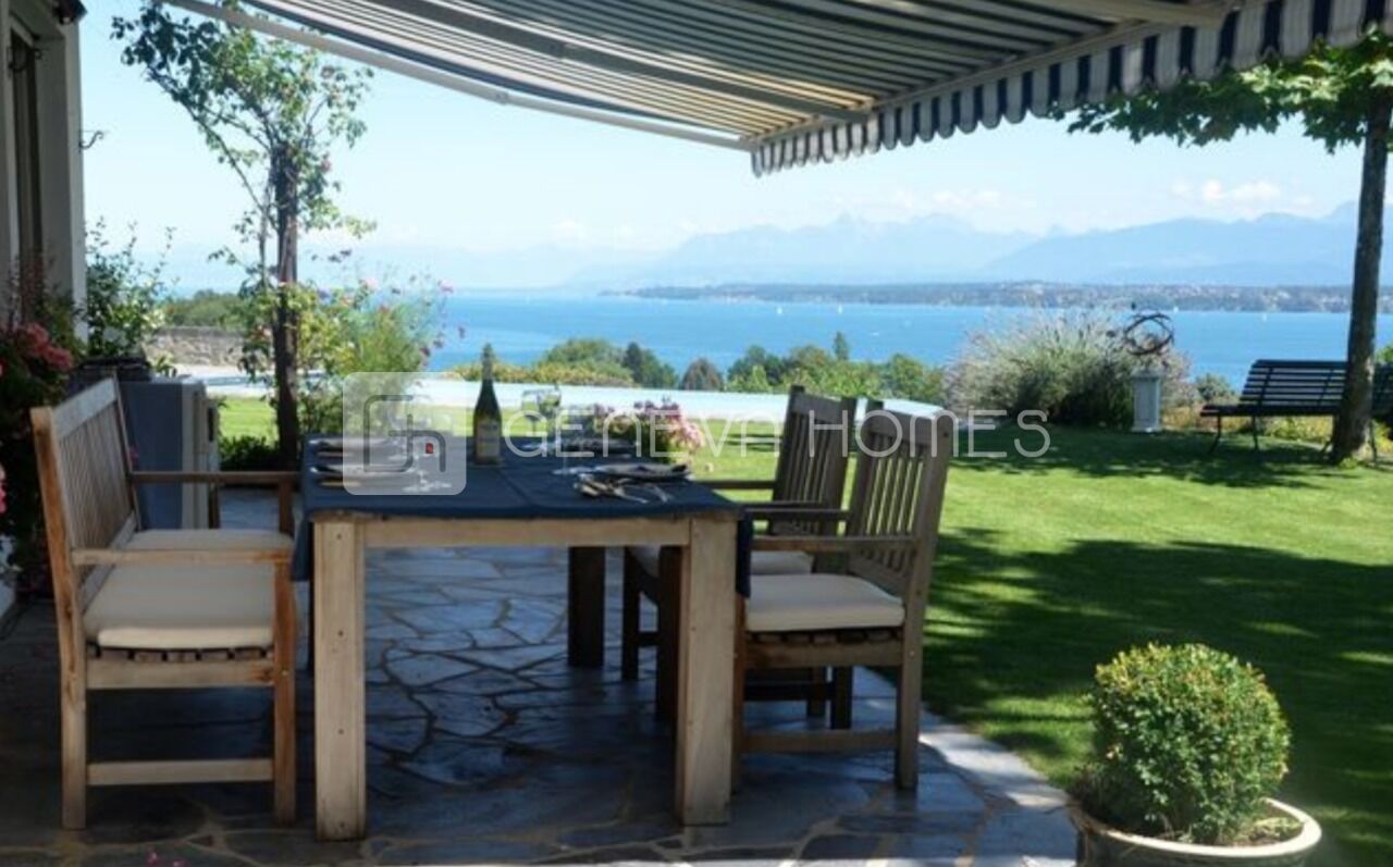 Belle maison d'architecture traditionnelle vous fera sentir comme un air de vacances avec une magnifique piscine à débordement de 4 x 10 mètres chauffée. Elle a été construite sur une belle parcelle de 2083 m2, en 1975 avec des matériaux de bonne qualité.Privilégiée par une situation idyllique grâce à la dominance de son terrain la vue est totalement dégagée de Genève à Montreux.