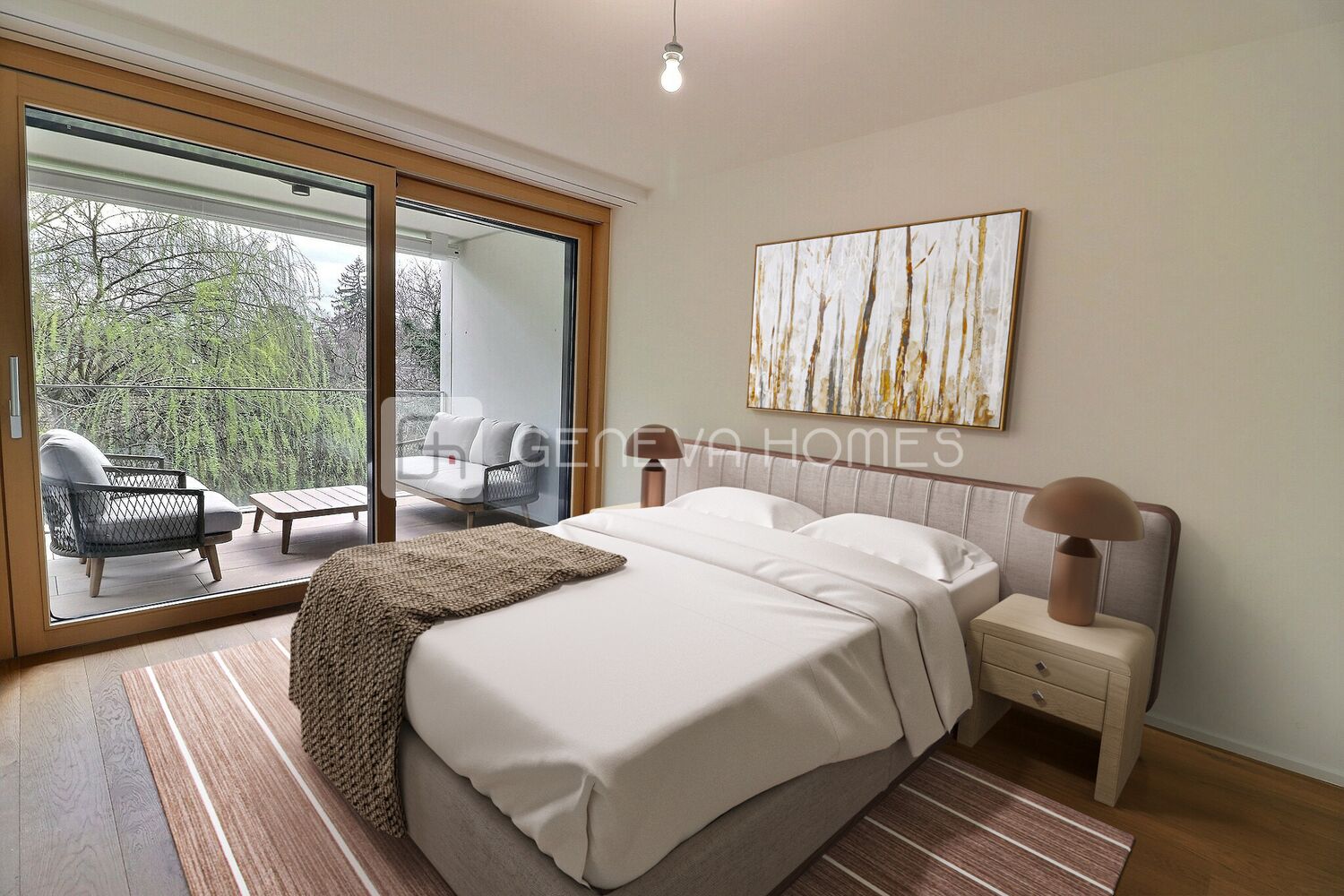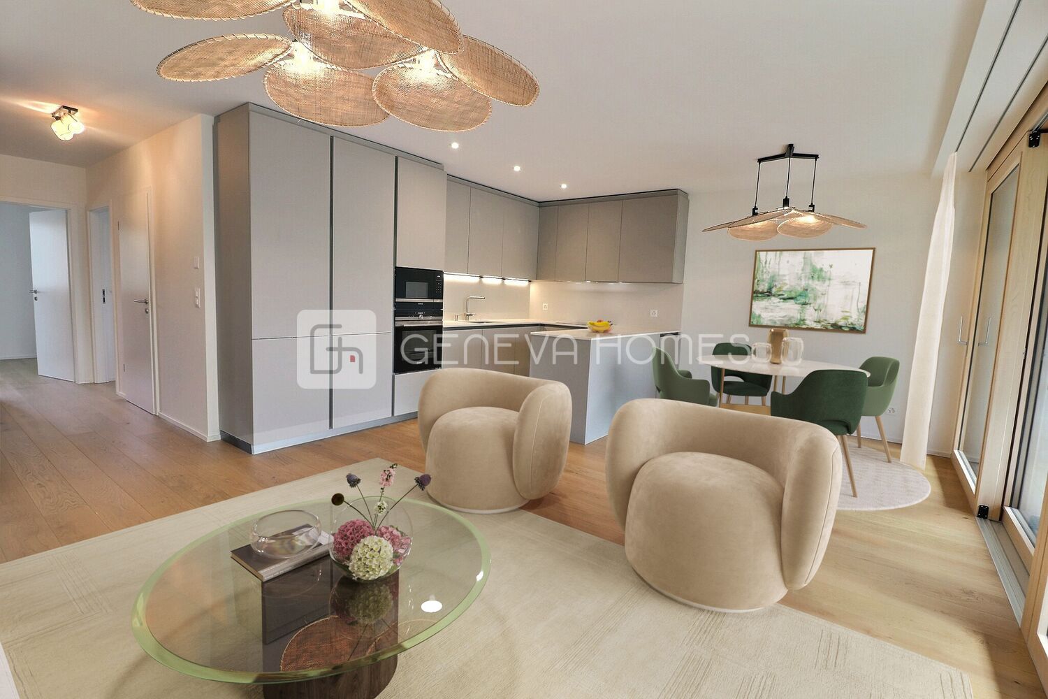 Située au coeur de Chêne-Bougeries, ce magnifique appartement aux finitions raffinées fait partie d'une résidence sécurisée construite en 2022.Elle jouit d’un emplacement idéal dans un environnement calme et verdoyant, tout en étant à proximité immediate de l'arrêt de tram et de toute les commodités.