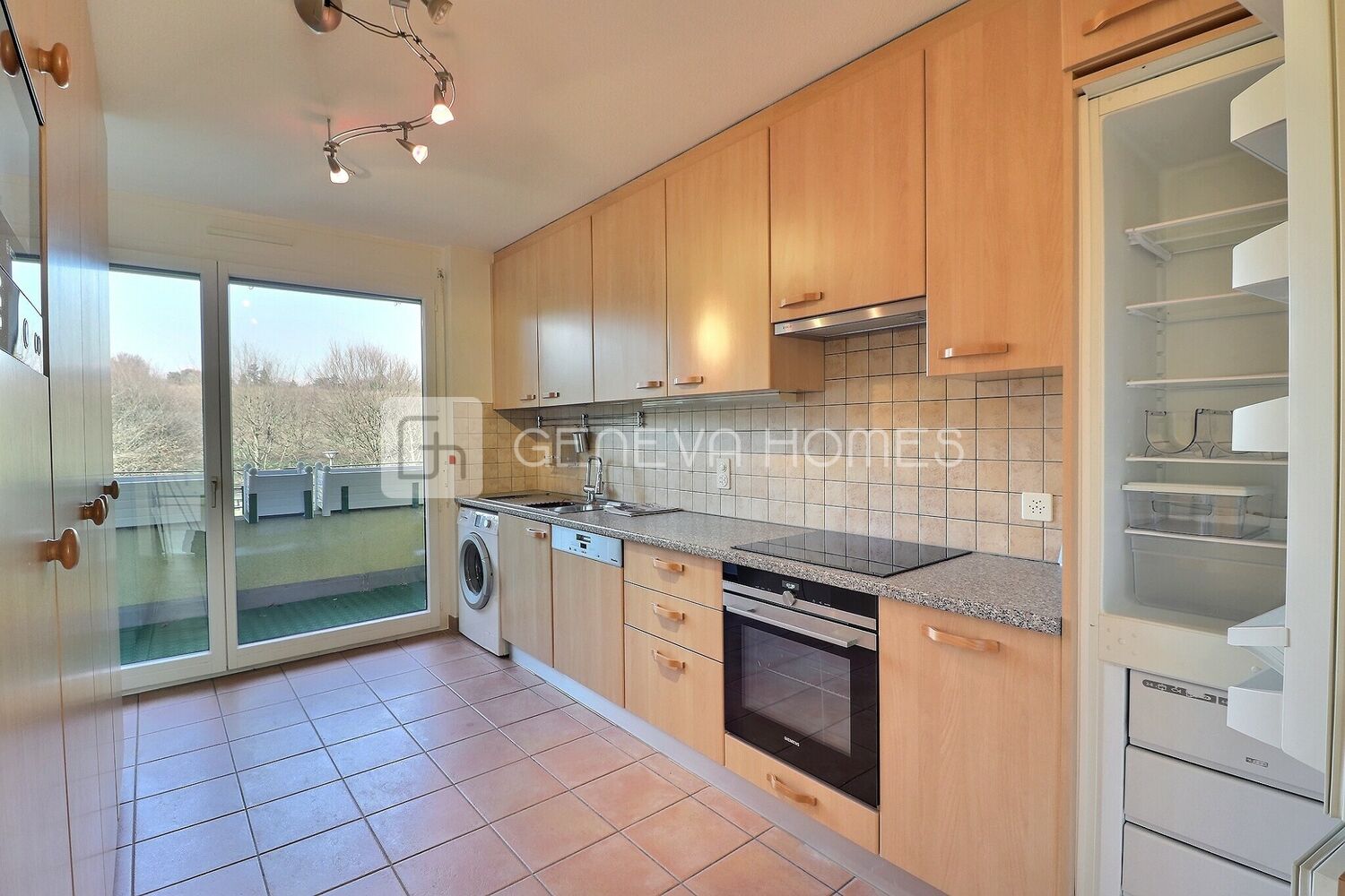 - Une cuisine entièrement équipée (four, lave-vaisselle, frigo etc.) avec machine à laver et avec accès à un deuxième balcon