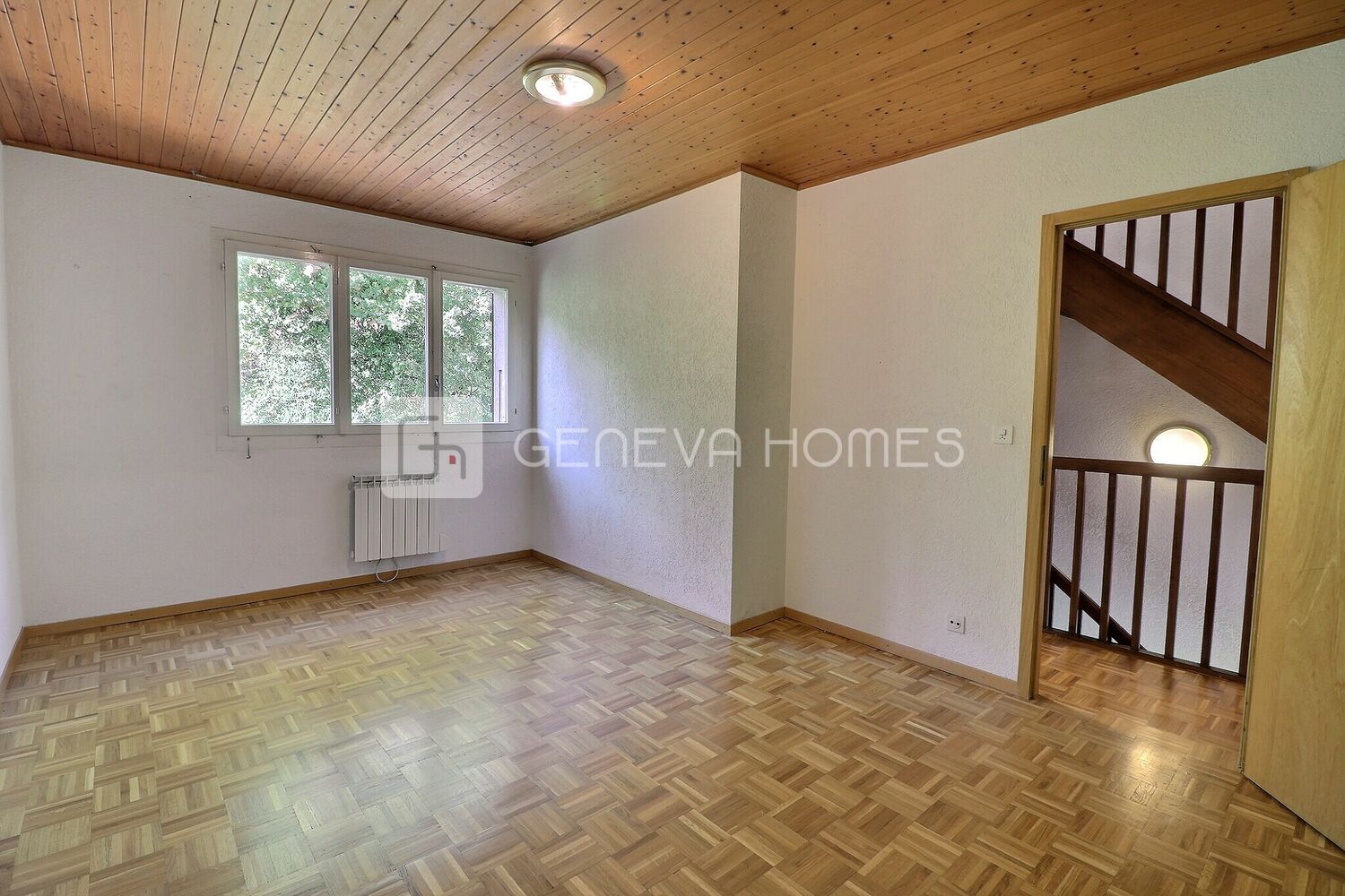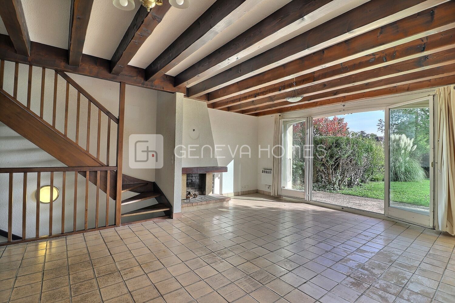 Maison contiguë en pignon avec vue dégagée sur les champs. Située à seulement 100mts du siège de Richemont et des écoles, elle est au coeur de la verdure et sans vis-à-vis.