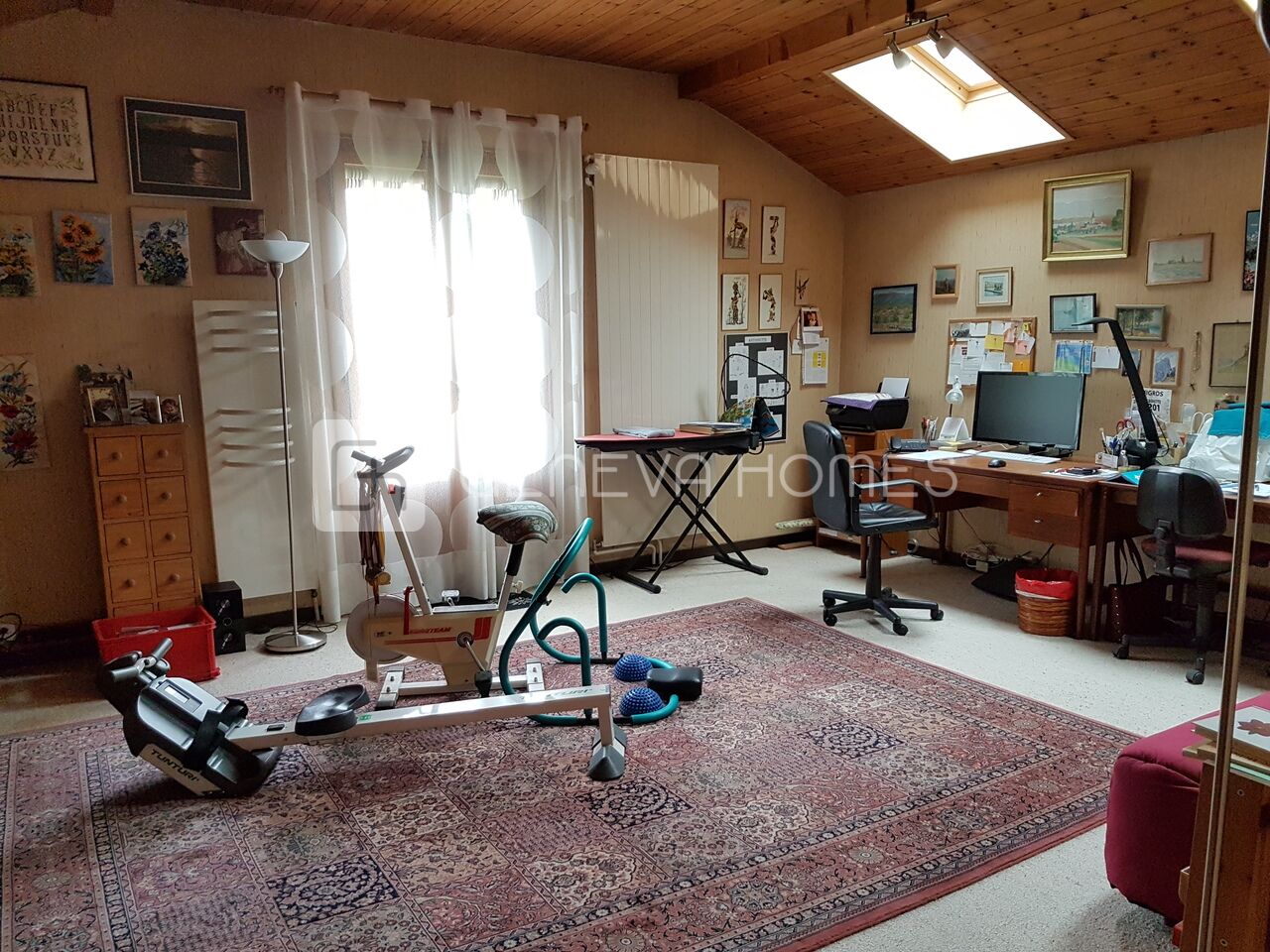 Belle maison individuelle de 150 m2 au calme a Collonge Bellerive. La maison a été construit dans les années 80 sur une parcelle d'environ 850m2 avec une echapée du lac.Elle est composé comme suit: