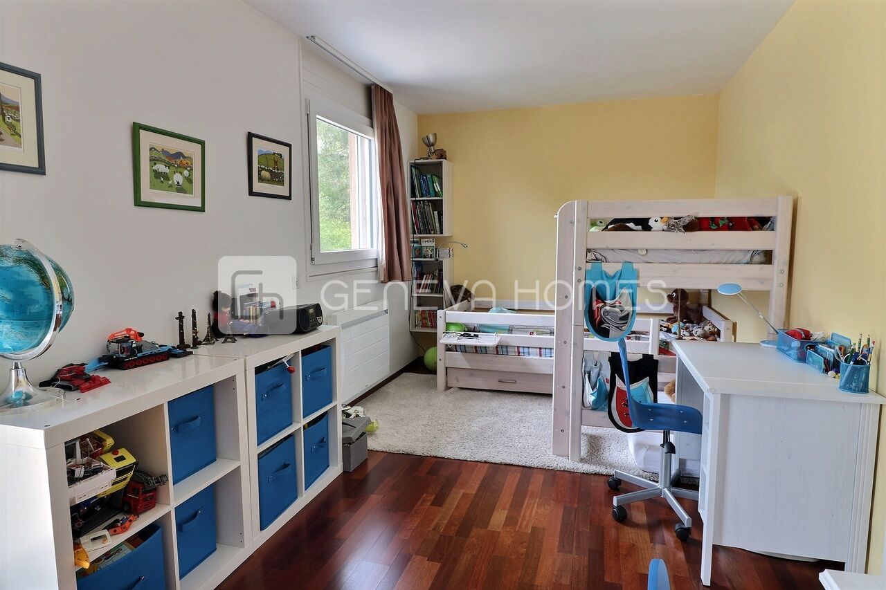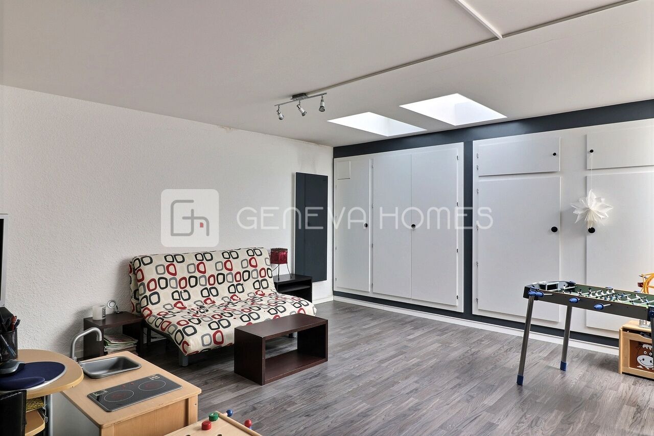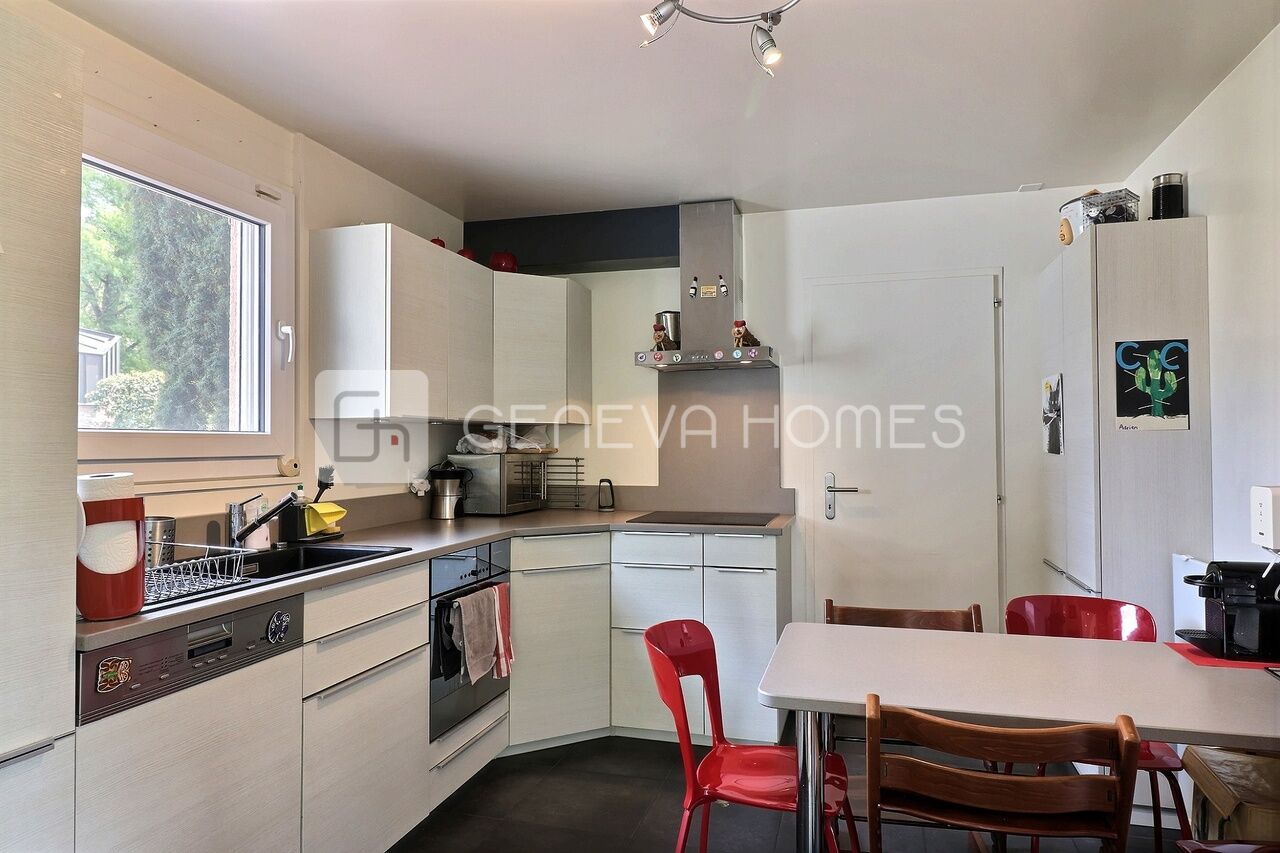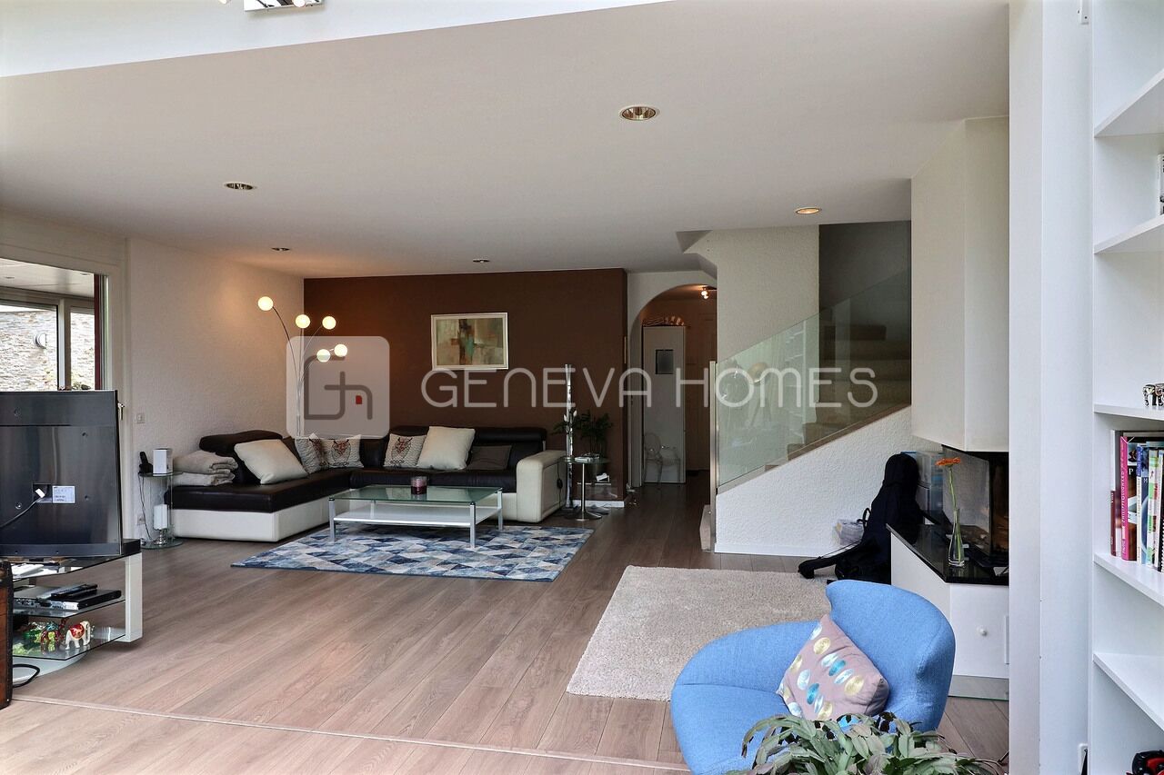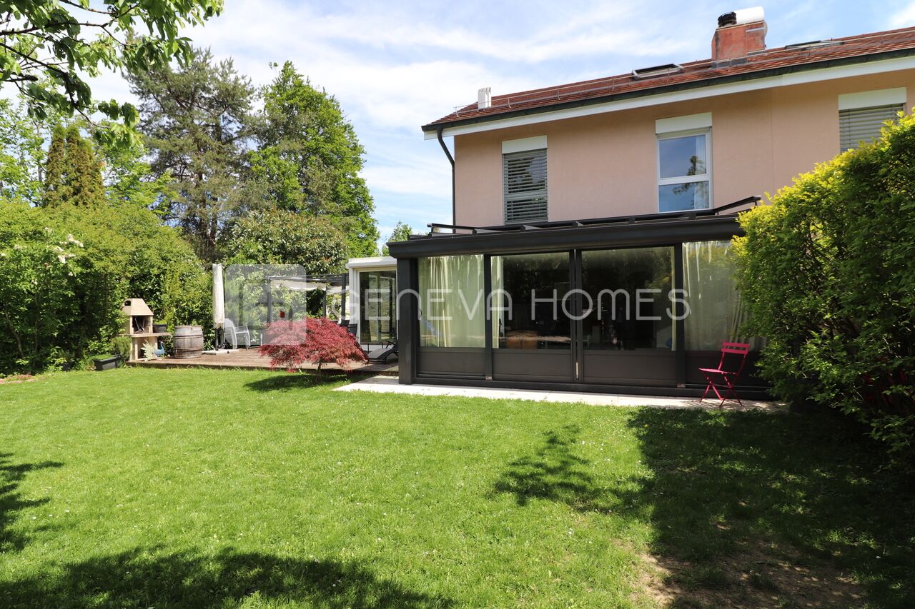 Construite en 1989, cette belle villa mitoyenne est située dans la commune de Veyrier, à proximité de l’École de Bois Gourmand, du Centre Sportif du Grand Donzel et des transport publics. Elle profite d’une situation très agréable et familiale.La villa a été rénovée et agrandie en 2012 et 2015, avec des matériaux de qualité. Elle offre une superficie d’environ 170m2 habitables repartie sur trois niveaux et un grand sous-sol (totalisant 250m2 utiles) et une parcelle de 470 m2.